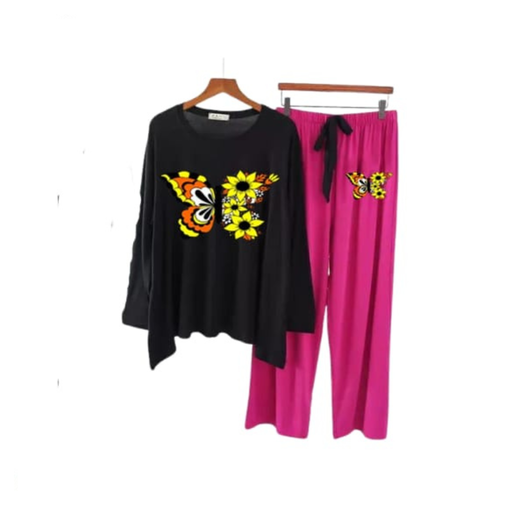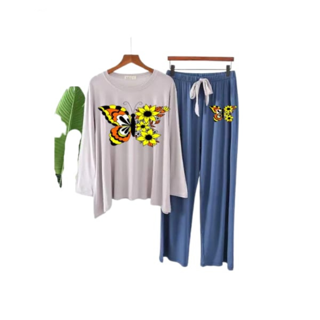 Sunny Butterfly & Sunflower Graphic Loungewear Set - Two-Piece Comfort