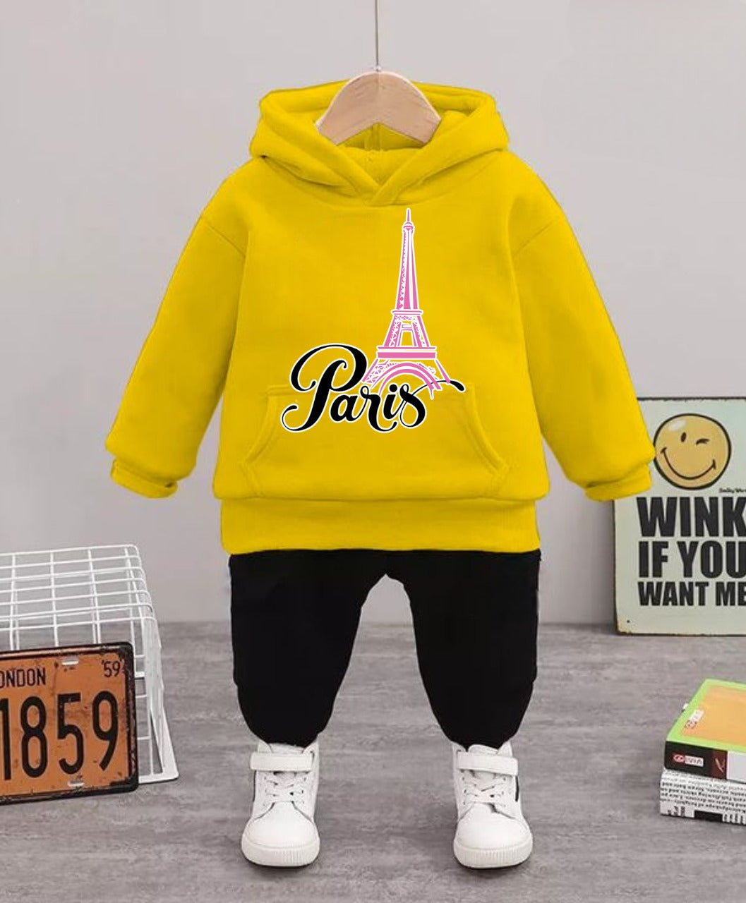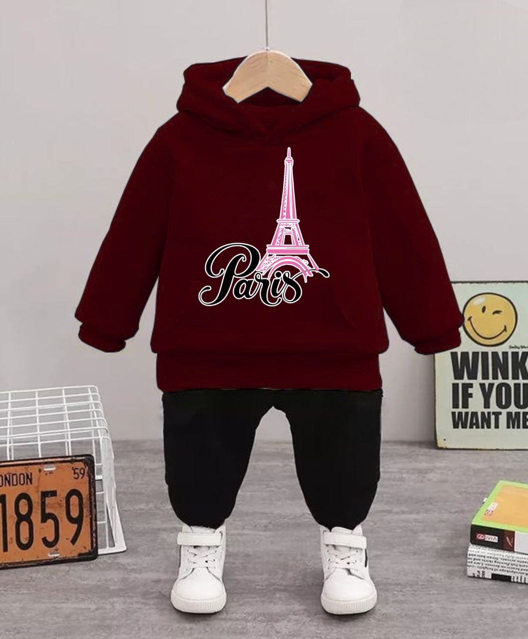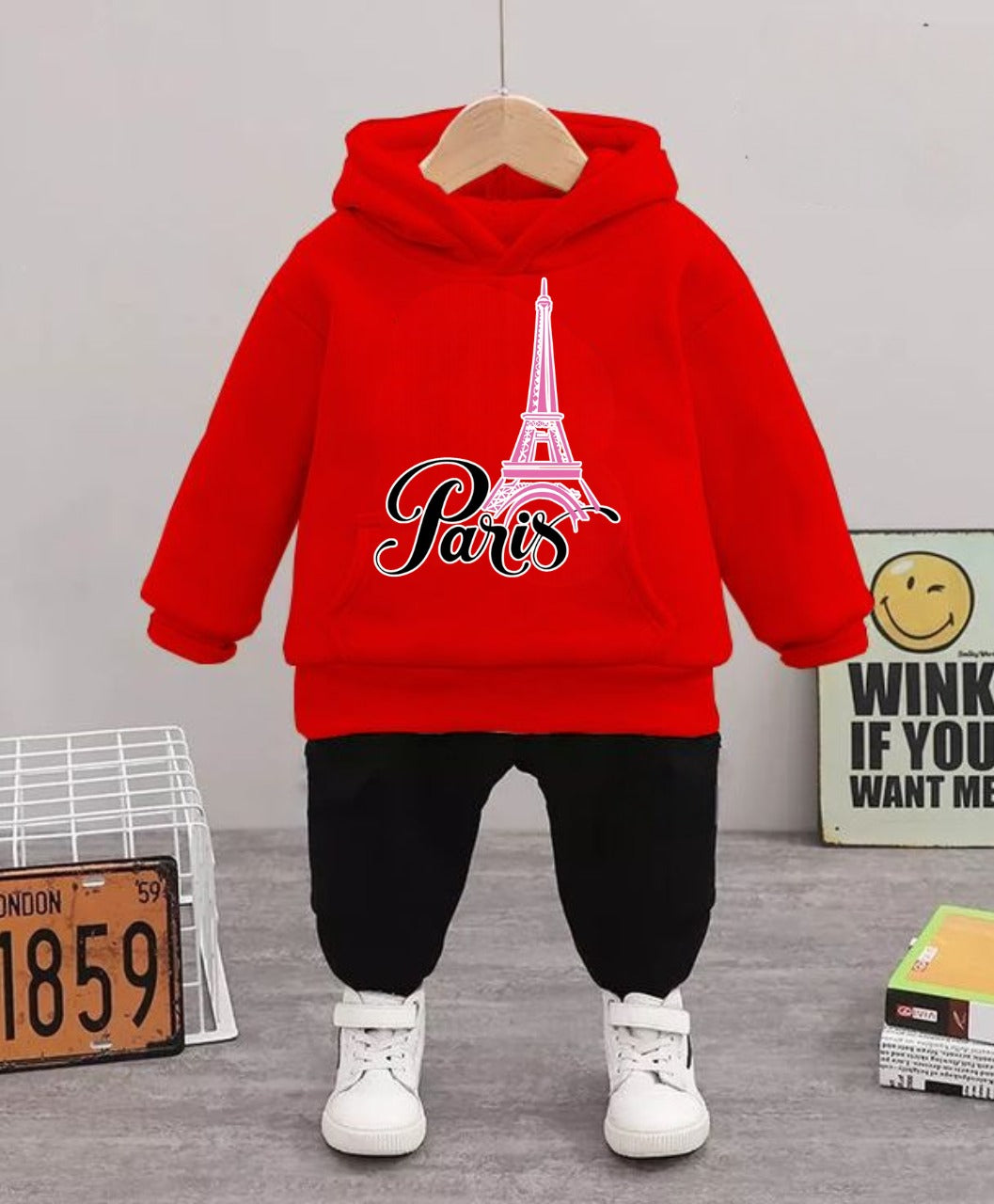 Red 'Paris' Eiffel Tower Stylish Kids' Hoodie and Pants Set